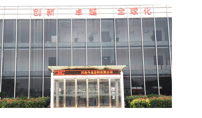 河南今龍涂料有限公司是集研發(fā)、生產(chǎn)、銷(xiāo)售一體的專(zhuān)業(yè)性企業(yè)。公司位于鄭州市新鄭市鄭新快速路與黃金大道交叉口向西500米,占地面積近20000平方米。公司現(xiàn)有品牌產(chǎn)品“今龍”“丹頂鶴”,已在國(guó)家商標(biāo)局注冊(cè)。主要研究、開(kāi)發(fā)高中檔乳膠漆、多彩(水包水、水包砂)、建筑材料、真石漆、質(zhì)感漆、浮雕漆及防水涂料等健康產(chǎn)品。